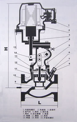 5.安装后,首先接通电源观察导杆上、下运动情况,向上阀门为开启,向下为关闭,动作后既可切断电源,通入介质。