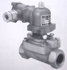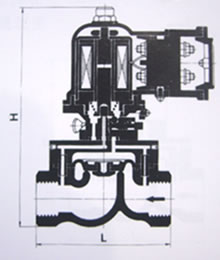 该阀是利用电磁铁进行操作的先导,浮动式膜片结构常闭型二通电磁阀。图示为关闭状态。此时,是靠作用在膜片上腔工作介质的压力进行关闭的。当通电时,动铁芯被电磁铁吸起,开启先导阀孔口,将膜片上腔压力释放,形成一个不平衡压力,利用管路压力将膜片上推,离开主阀孔口,开启了阀门。当断电时,动铁芯关闭先导阀孔口,管路压力通过旁通孔施加于膜片上腔,形成一个关闭力,使阀门严密关闭。